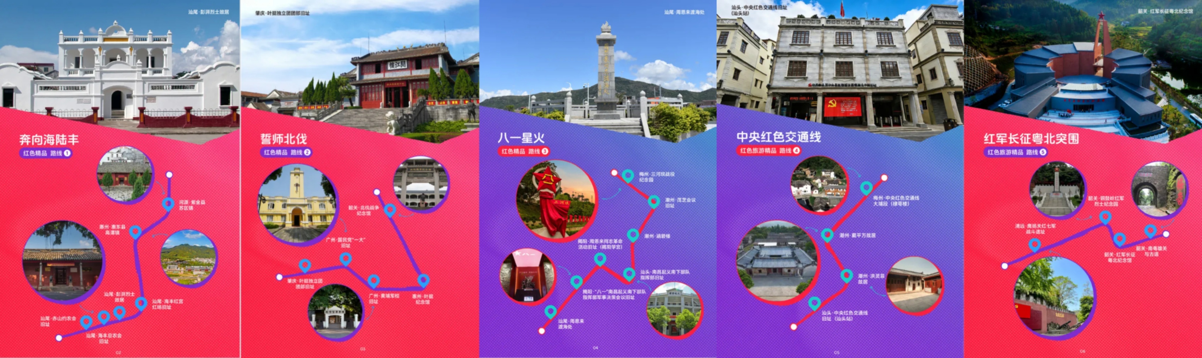 梅州(三河坝战役纪念园)—潮州(茂芝会议旧址、涵碧楼)—汕头(南昌起义南下部队指挥部旧址)—揭阳[周恩来同志革命活动旧址(揭阳学宫)、“八一”南昌起义南下部队指挥部军事决策会议旧址]—汕尾(周恩来渡海处)