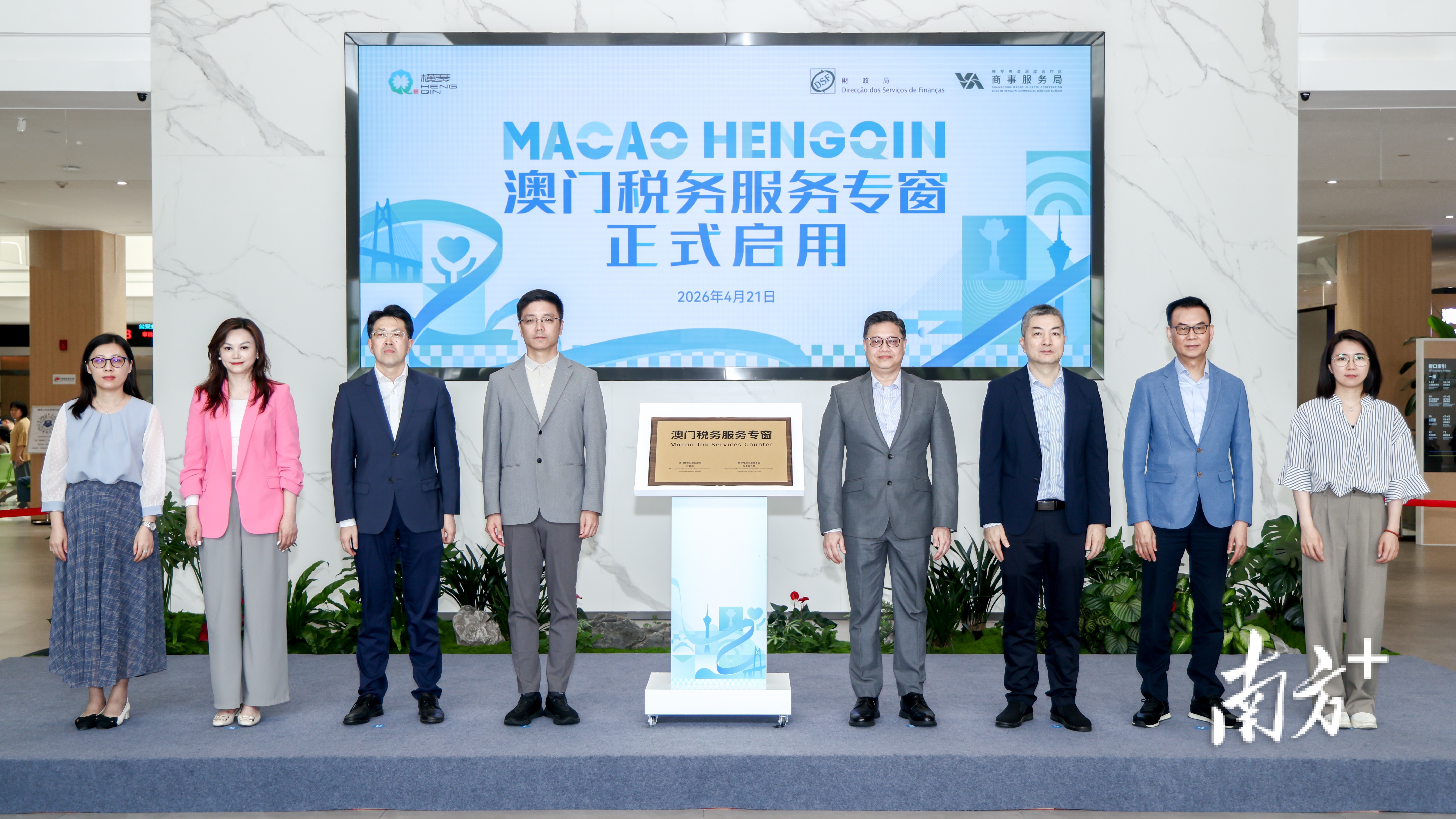 4月21日,横琴粤澳深度合作区商事服务局联合澳门特别行政区政府财政局共同举办澳门税务服务专窗启用仪式,标志着内地首个聚焦澳门税务服务的专属政务窗口正式落地横琴。合作区执委会副主任李翀、合作区商事服务局局长张文骥、澳门财政局副局长郭日海等领导出席仪式。