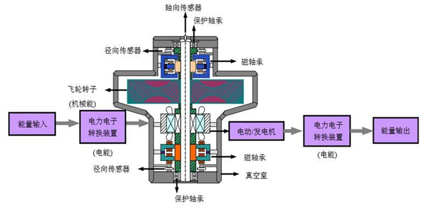 2014年之前,海军工程大学公开论文证实已经成功研发50MW(兆瓦)飞轮储能装置。在马伟明院士的指导下,王东教授等军内外科研团队经多年苦心研究,目前我国集中突破了高能量密度、长脉宽和长寿命的惯性储能技术,创造性提出了将拖动机、励磁机、旋转整流器及主发电机共轴集成,并将飞轮与转子合二为一的储能系统。这套系统在测试中充分展示了其在短时间内储存较多电能的能力,峰值输出功率超过美国电磁弹射系统储能设备的两倍,且储能飞轮的寿命至少可以满足几十万次充放电循环,从而让电磁弹射系统持续弹射舰载机的效率得到提高。