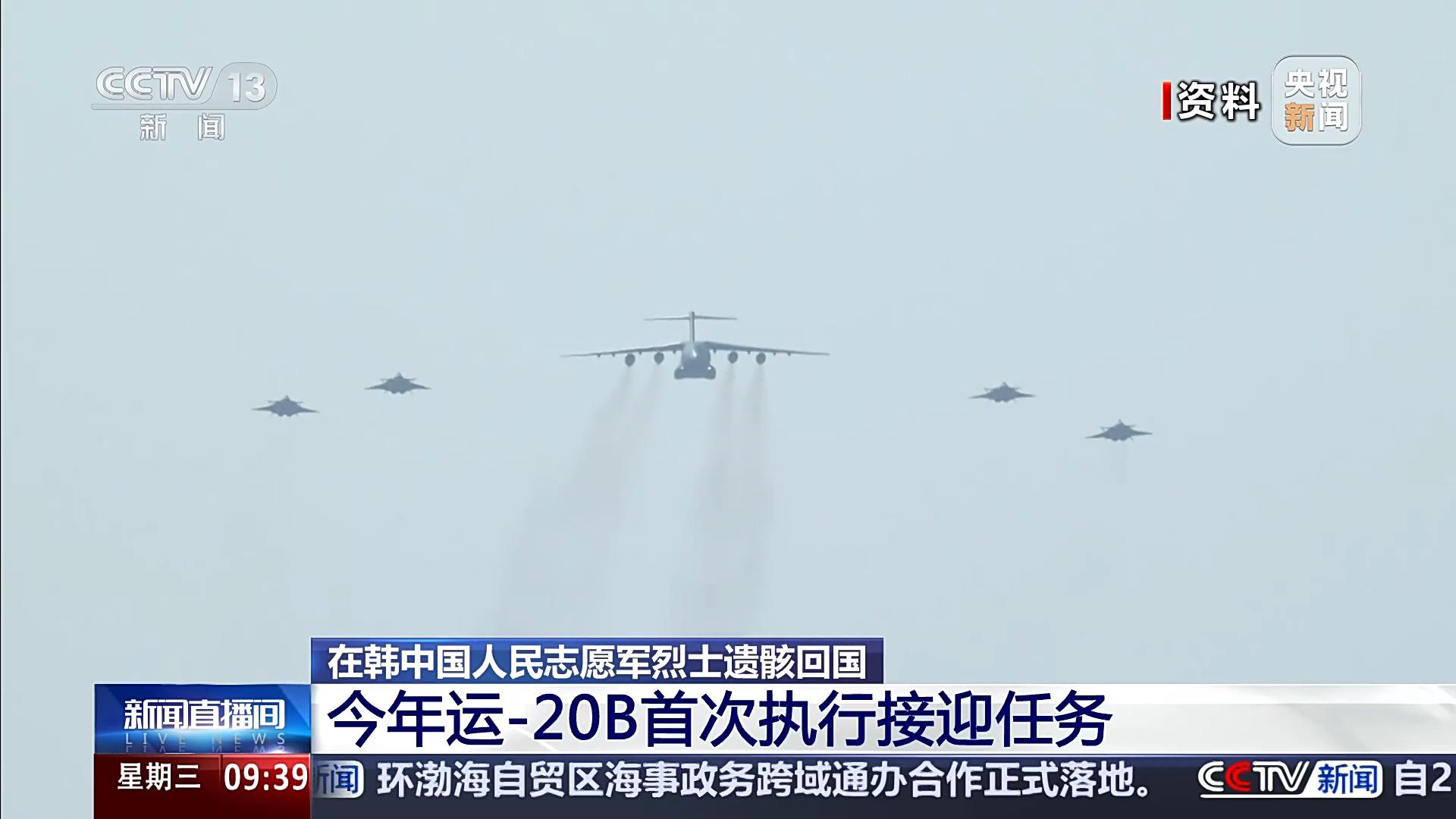 如今,第十三批在韩志愿军烈士遗骸归国,中国空军首次派出运-20B执行接迎任务,歼-20战机护航,以全新的空中编队,开启迎接英烈回家的新征程。
